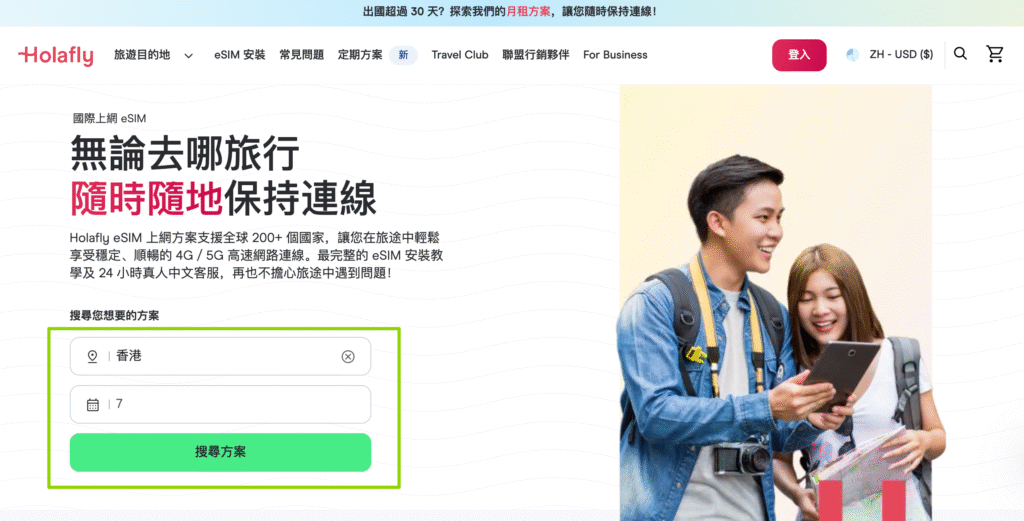 - 前往 Holafly 官網選擇目的地與方案