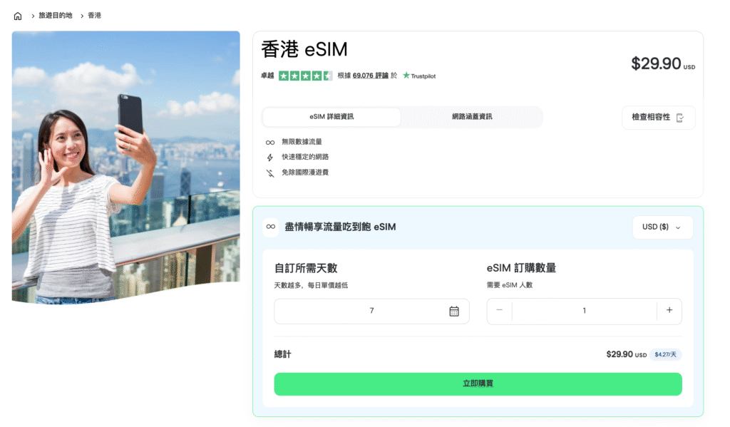 - Holafly 支援全球 160+ 地區,香港、日本、歐洲都可即時開通