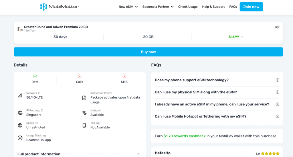 - Mobimatter 不定期提供折扣活動,新用戶首次購買常能享受 5~10% 優惠。